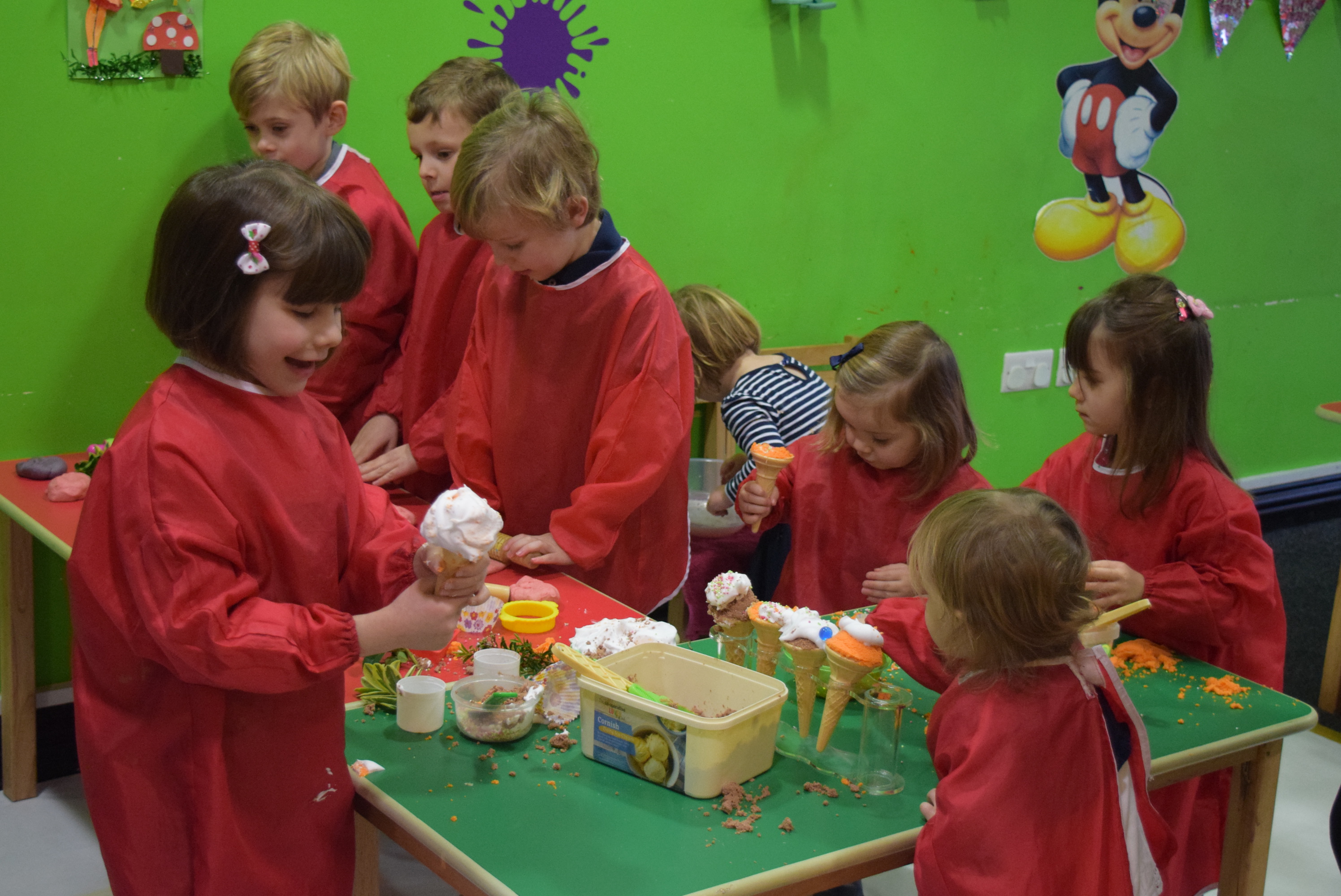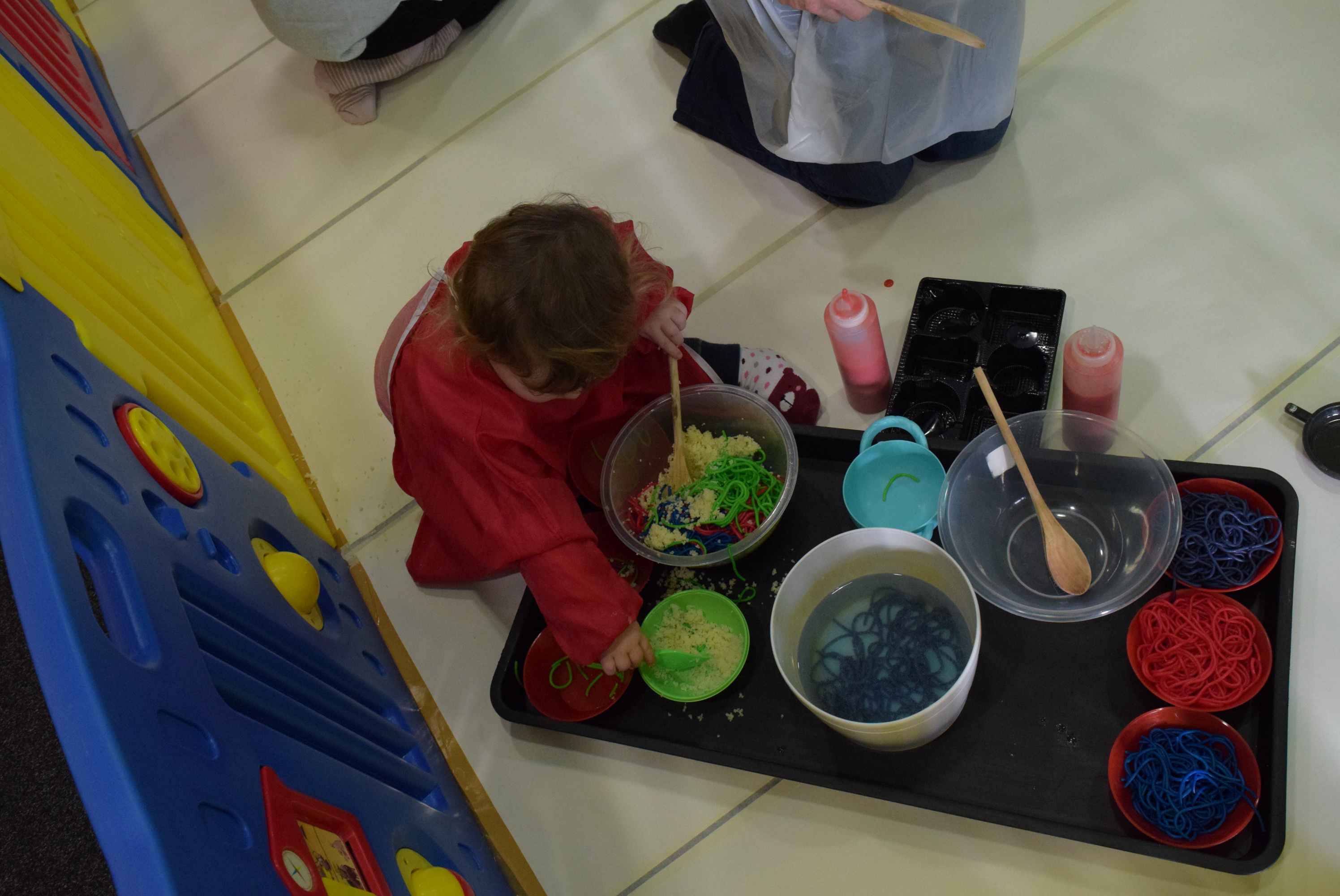 Children normally have about 45 minutes of fun in messy play. Children will then need to brush their feet (with a towel) and wash their hands ready for some party games.